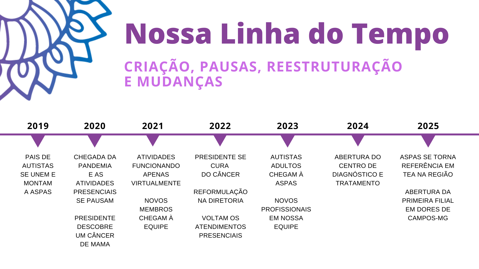 Em 2019 um grupo de pais de autistas se reuniu para fazer o 1º Encontro de Conscientização do Autismo. O encontro foi um sucesso e surgiu a urgência de fundarmos uma associação que lutasse pelos direitos da pessoa autista, conecta-se essas pessoas e pudesse oferecer as demandas específicas do TEA. Daí surgiu a Associação de Pais de Autistas de São João del-Rei, hoje Associação Pró-Autistas, após a chegada do primeiro autista em sua diretoria.